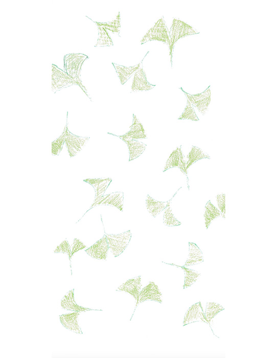 The gingko is the official tree of Tokyo, so my idea was to make it look like lots of gingko leaves were scattered across the sky. During the season when the Olympic games will be held, the gingko trees will be filling the night sky with their beautiful greenery.