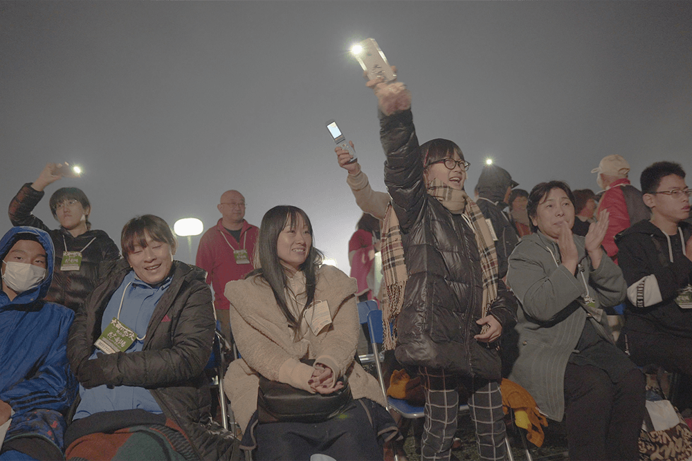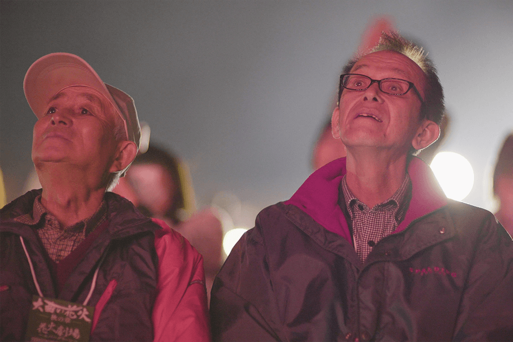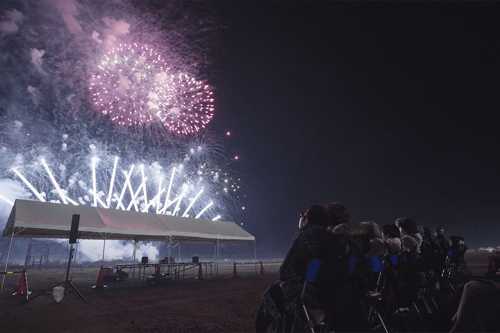 打ち上がる花火は、秋田の花火師たちが何度も試し打ちをして光りの強さや音の強弱に工夫を凝らし、弱視の方や難聴の方にも花火の音や光りを届けられるように作りました。