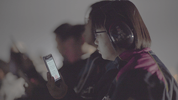 写真の女性は難聴の障がいをお持ちですが、同時に聴覚過敏でもあり、花火の破裂音やコンサート会場での大きな音などは、音が大きく聞こえすぎることで頭痛や吐き気などの体調不良をおこしてしまいます。そのため、今回のプロジェクトでは防音イヤーマフを用意し、事前に別の花火大会で試してもらったところ、大きな音が普通の大きさに聞こえてとても快適に花火を楽しむことができたと喜んでいただくことができました。防音イヤーマフで音が聞こえない部分は、UDトークの字幕でカバーしていただきました。