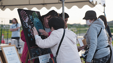 視覚障がいの方から多く寄せられた要望として、花火を触って感じられるものが何か欲しいというものがありました。この多くの要望にお答えし、展示ブースの設置、点図チラシ、点図プログラムという3つの「触ってわかる花火」を実現させました。
