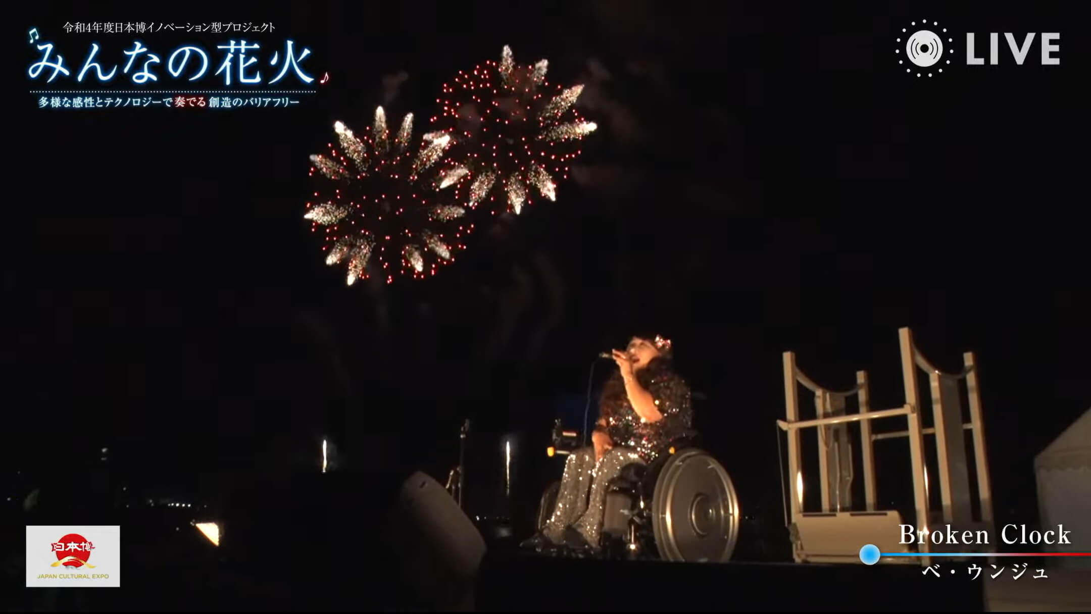 海外からは、韓国障害者文化芸術団体総連合会常任代表も務めるべ・ウンジュ氏も本企画のために来日頂きます。花火打揚げ当日は、会場での生演奏と花火打揚げのコラボレーションを実現します。この模様はLIVE配信され、会場にいない方でもお楽しみいただけます。