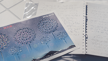 視覚障がいの方から多く寄せられた要望として、花火を触って感じられるものが何か欲しいというものがありました。この多くの要望にお答えし、展示ブースの設置、点図チラシ、点図プログラムという3つの「触ってわかる花火」を実現させました。
