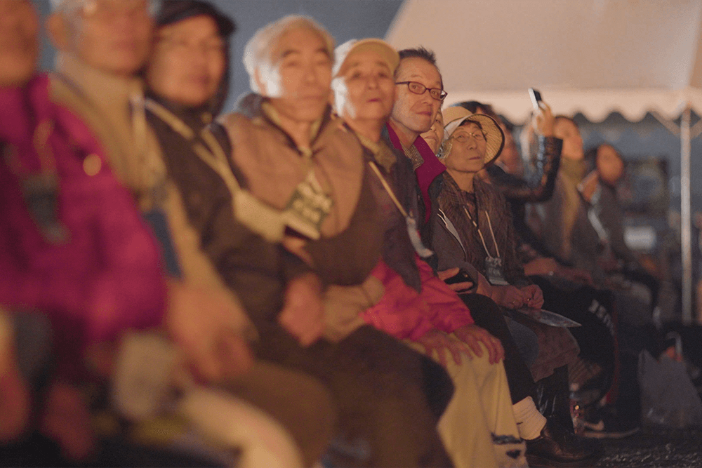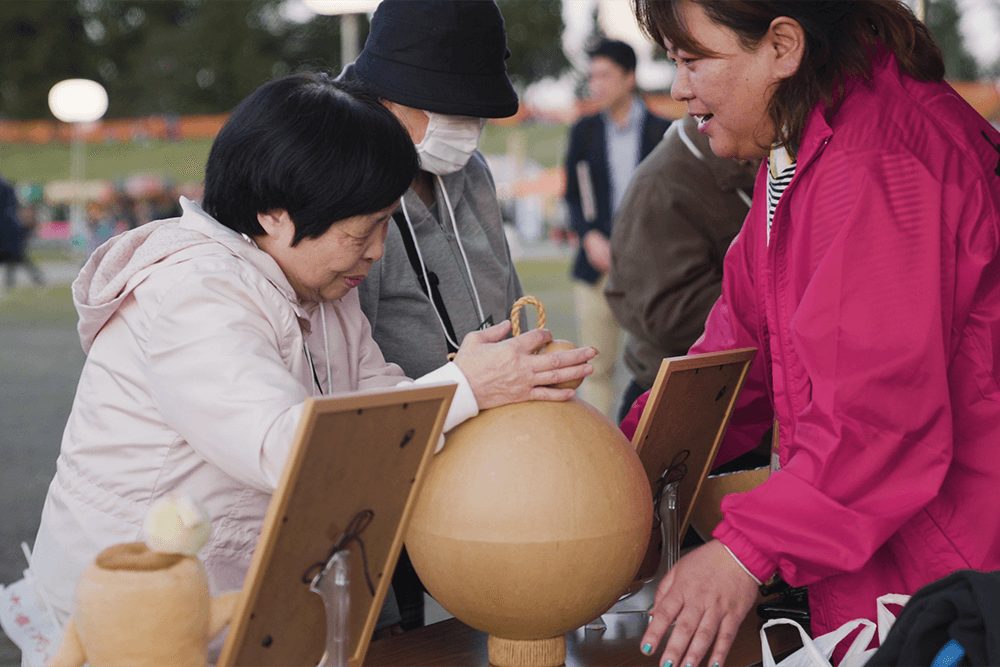 打ち上がる花火は、秋田の花火師たちが何度も試し打ちをして光りの強さや音の強弱に工夫を凝らし、弱視の方や難聴の方にも花火の音や光りを届けられるように作りました。