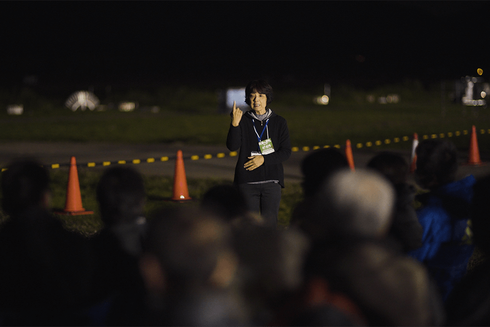 目の前に繰り広げられている花火の情景を、朗読劇で表現することにより、花火を見ることができない方にも、今どんな花火が上がっているのかを想像しながら楽しんでもらえるような構成にしました。朗読劇はストーリーがあり、その中には花火の説明なども織り交ぜられているため、健常者の方にもそのストーリーを楽しみながら、花火鑑賞をしていただけるよう工夫を凝らしたプログラムです。
