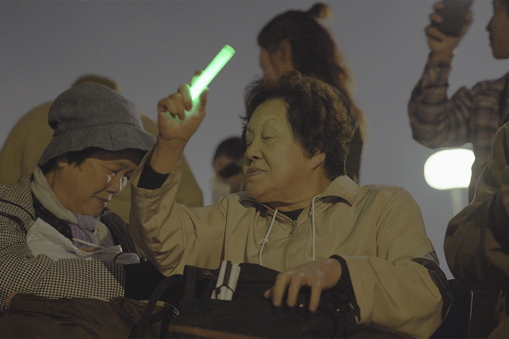 写真の女性は難聴の障がいをお持ちですが、同時に聴覚過敏でもあり、花火の破裂音やコンサート会場での大きな音などは、音が大きく聞こえすぎることで頭痛や吐き気などの体調不良をおこしてしまいます。そのため、今回のプロジェクトでは防音イヤーマフを用意し、事前に別の花火大会で試してもらったところ、大きな音が普通の大きさに聞こえてとても快適に花火を楽しむことができたと喜んでいただくことができました。防音イヤーマフで音が聞こえない部分は、UDトークの字幕でカバーしていただきました。